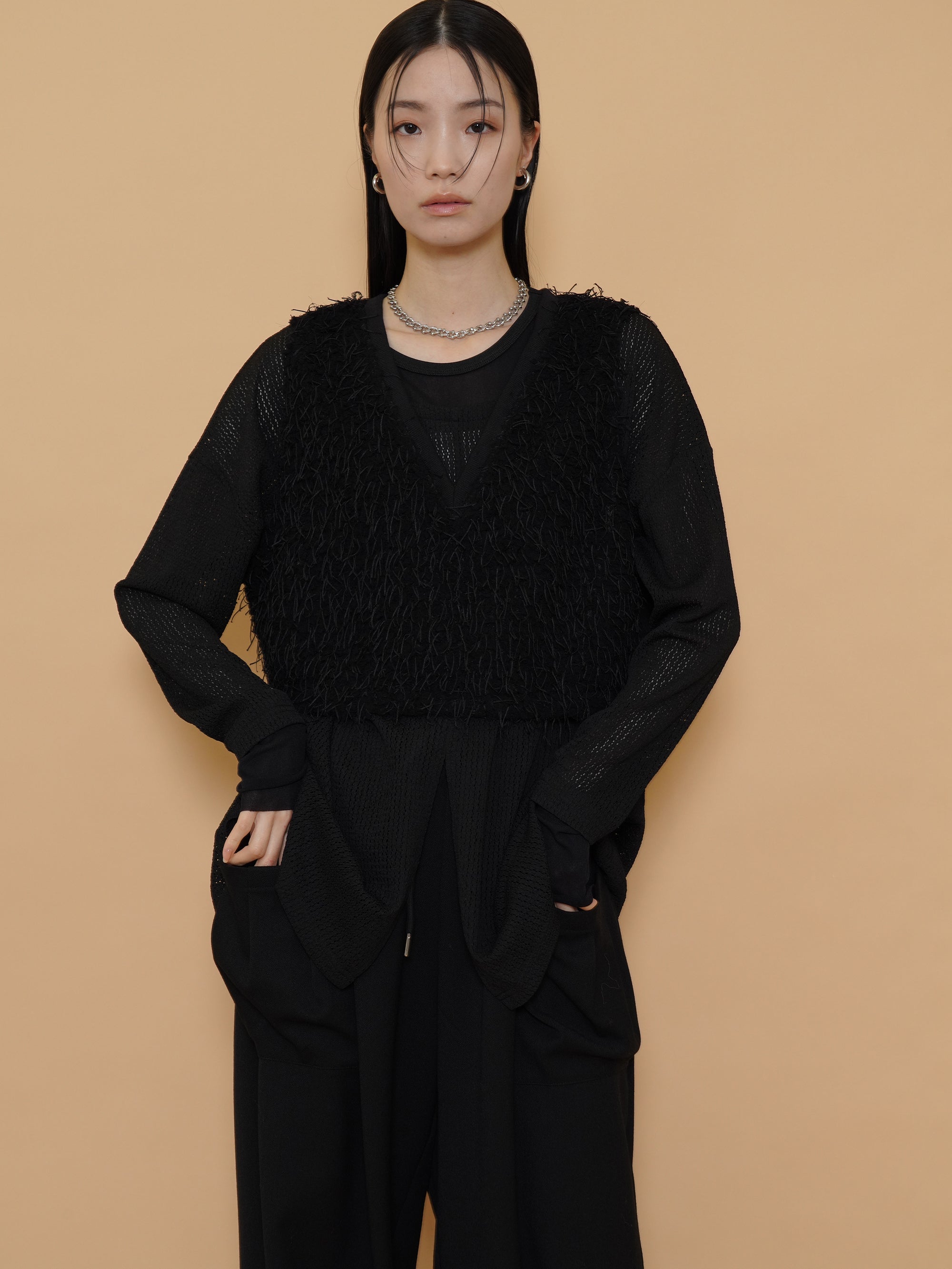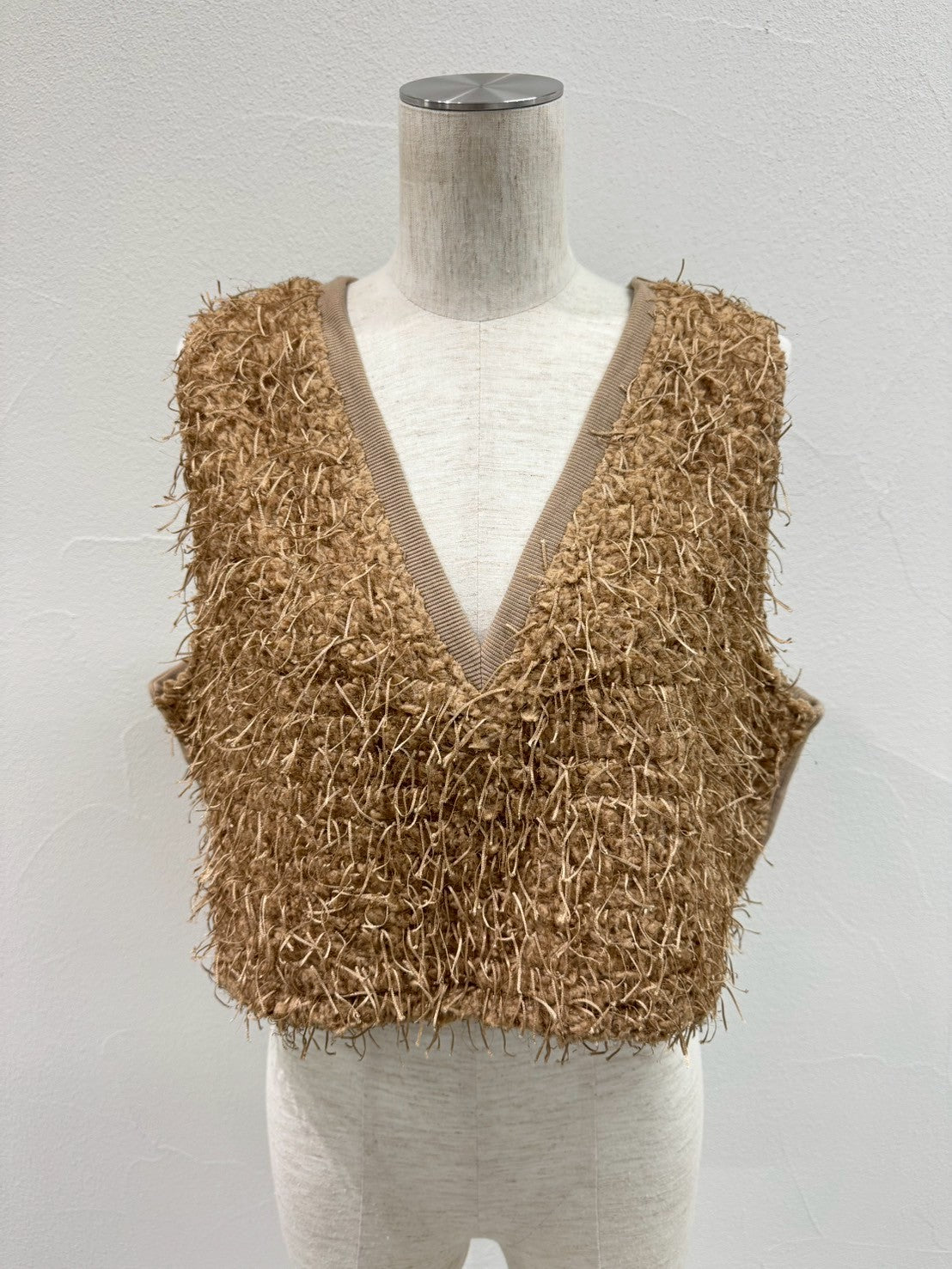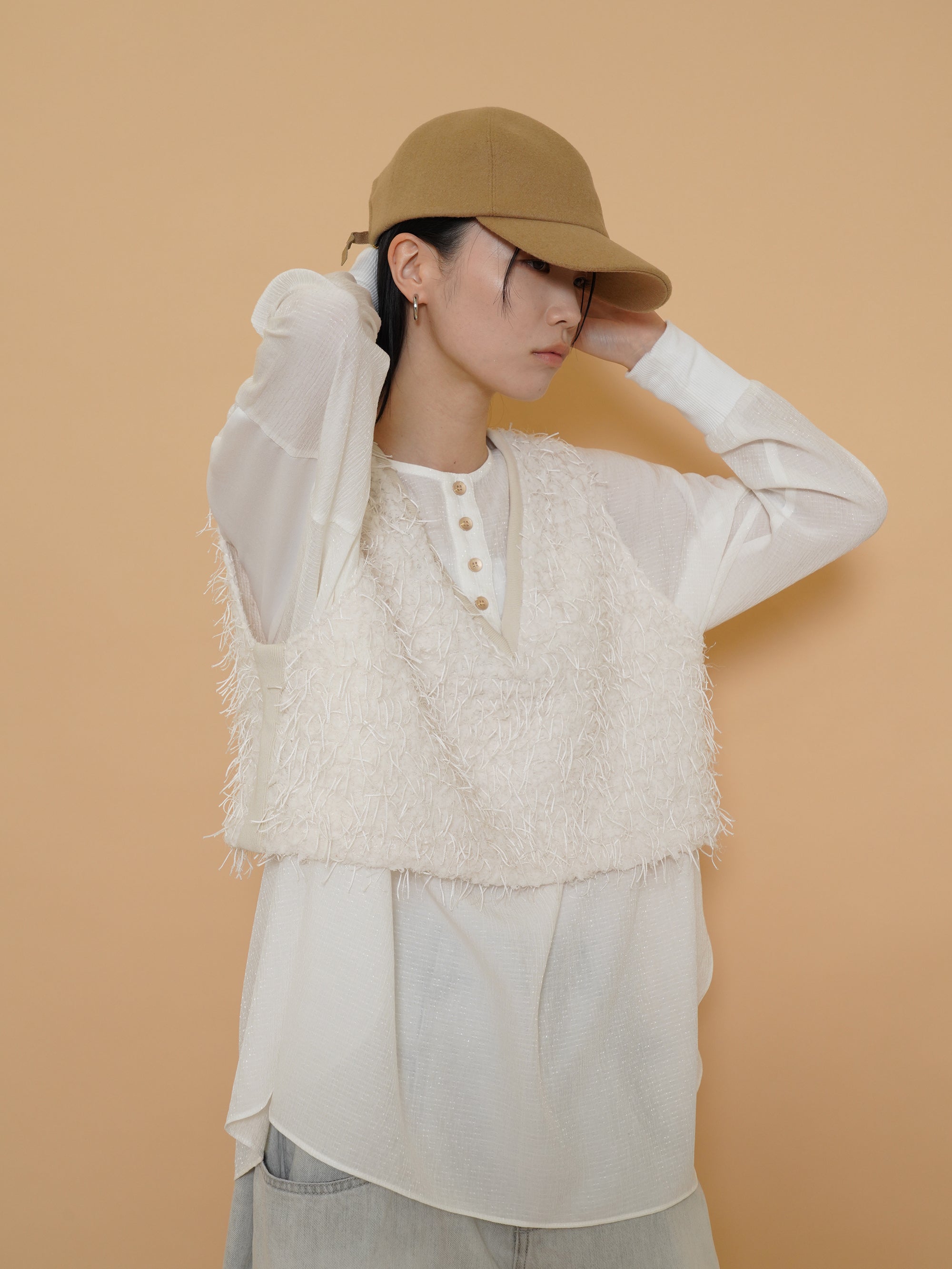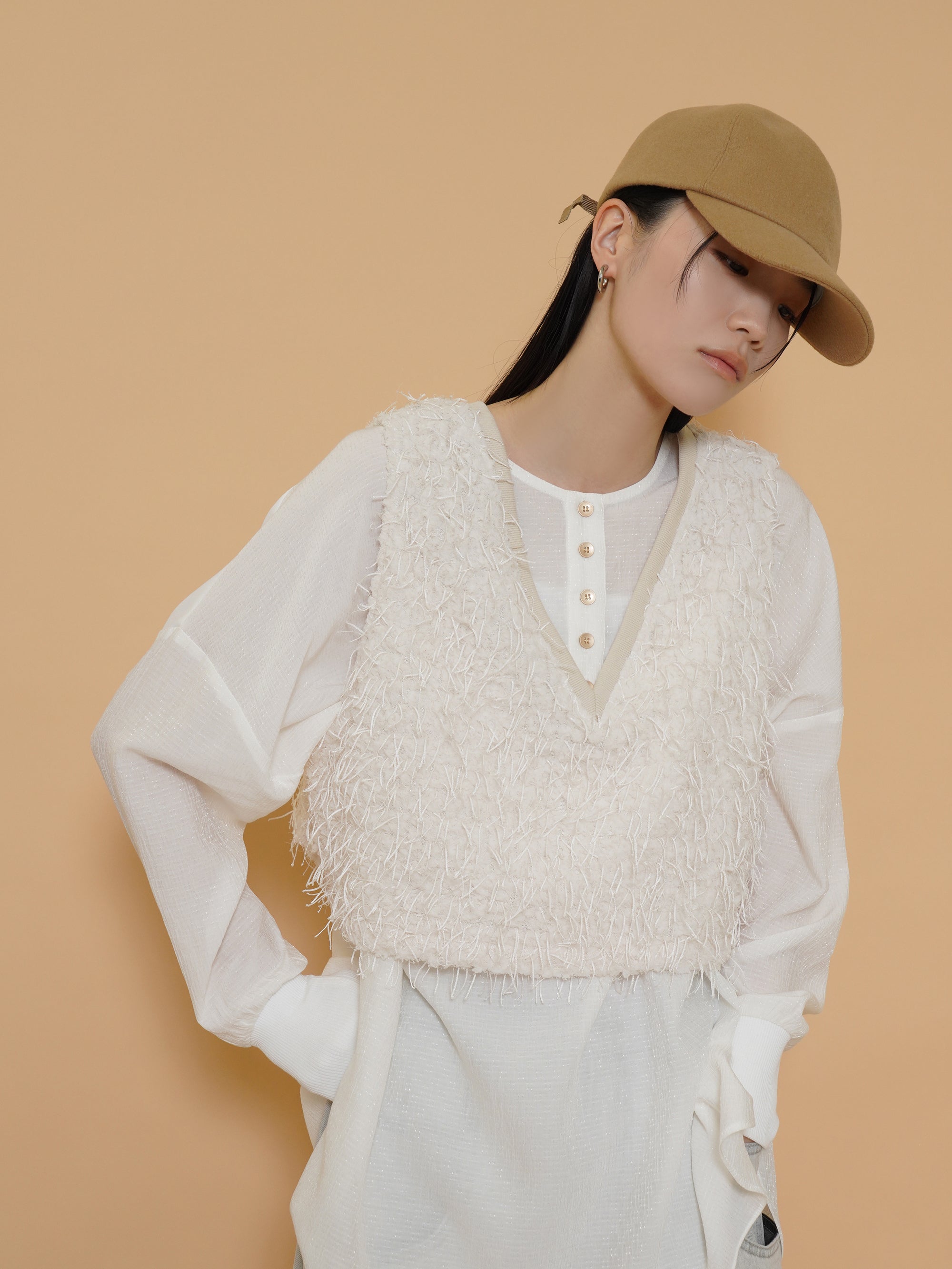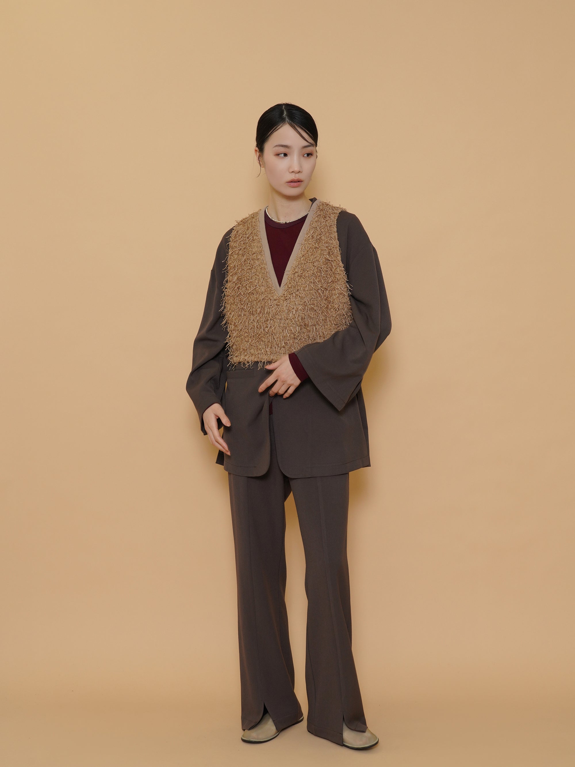 フリンジミックスのウォーム感のあるベストはプラス一枚で