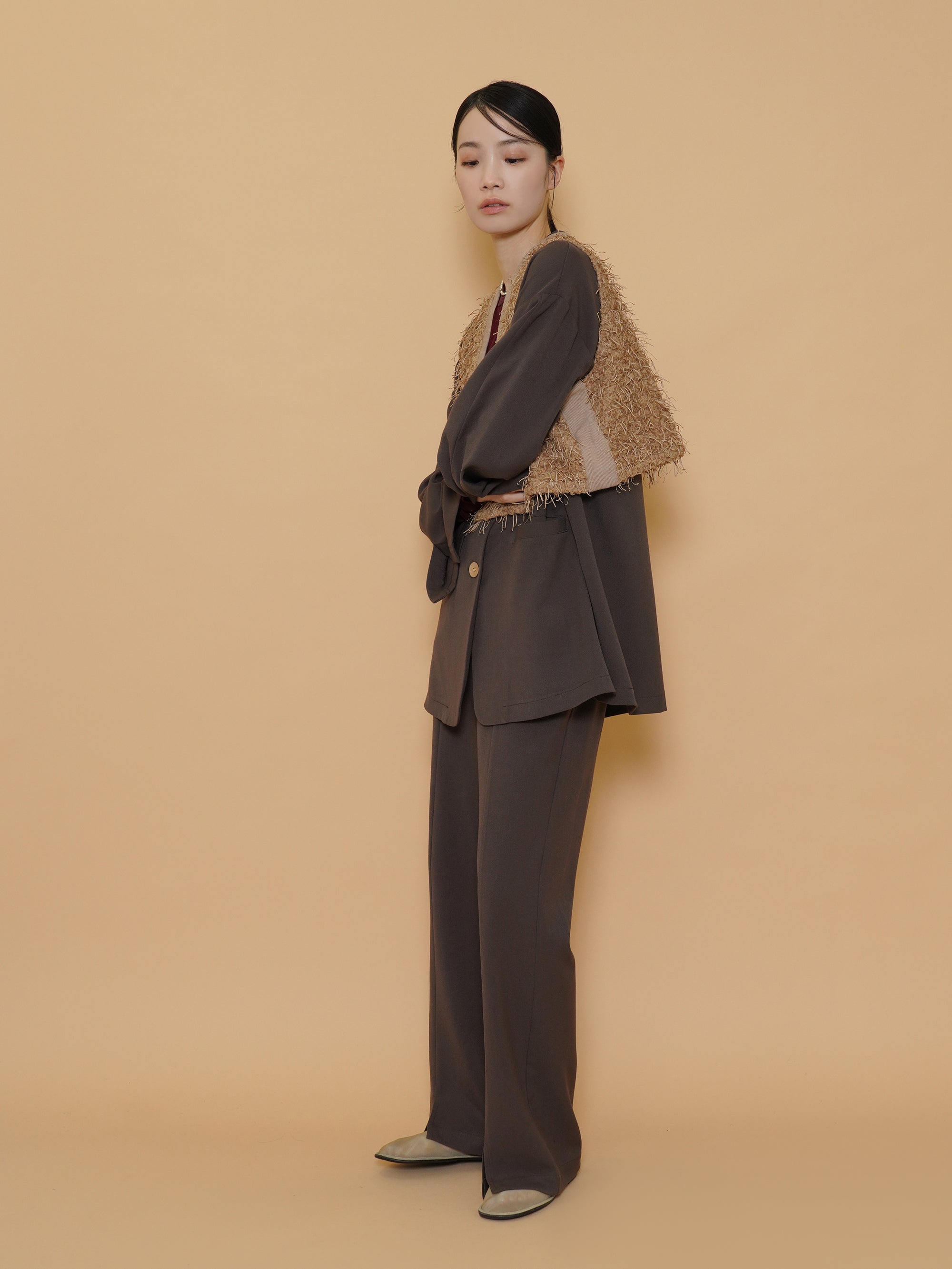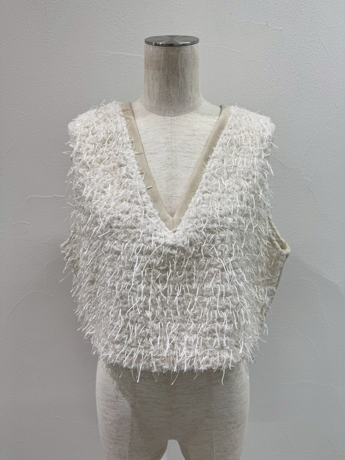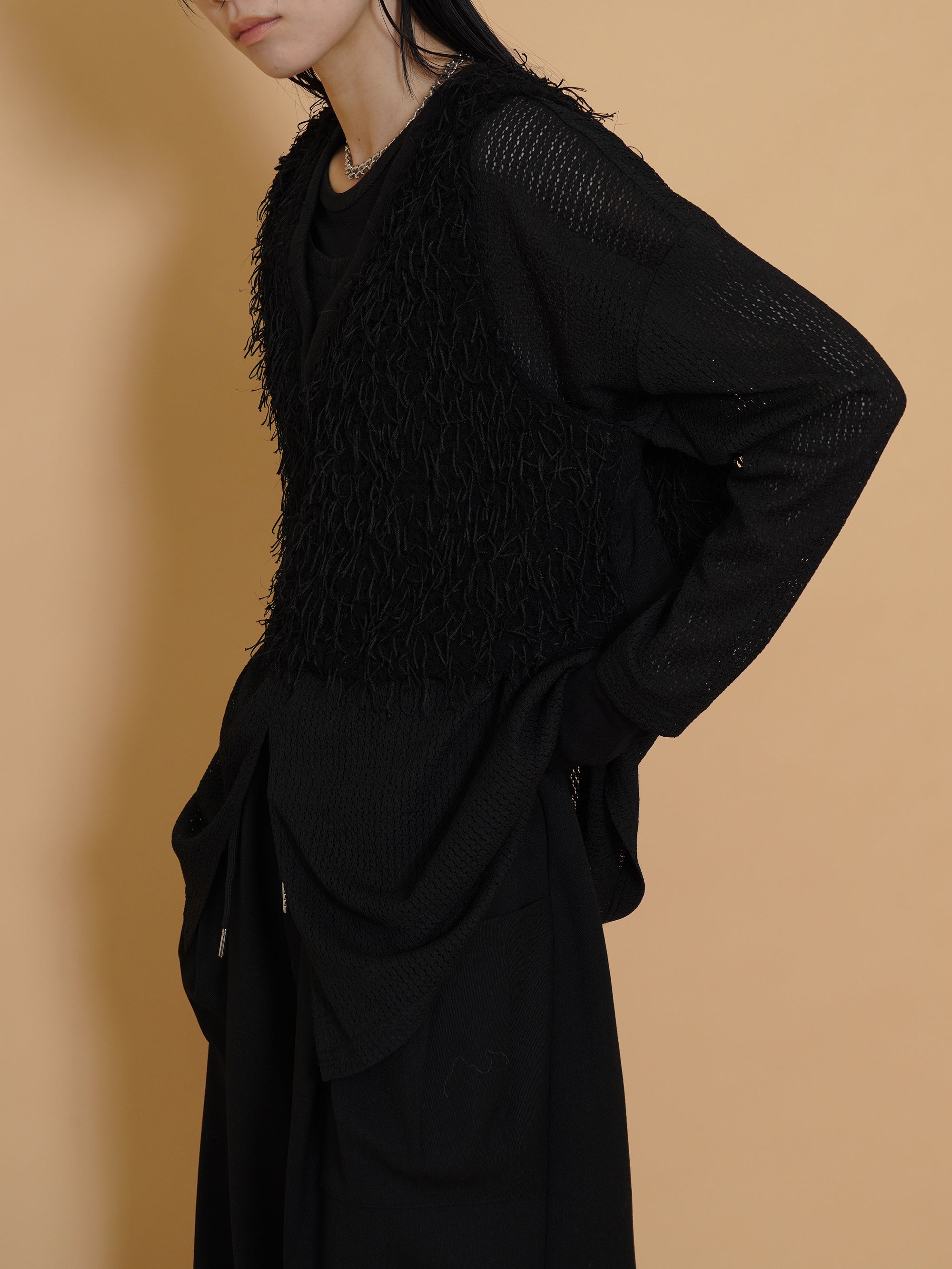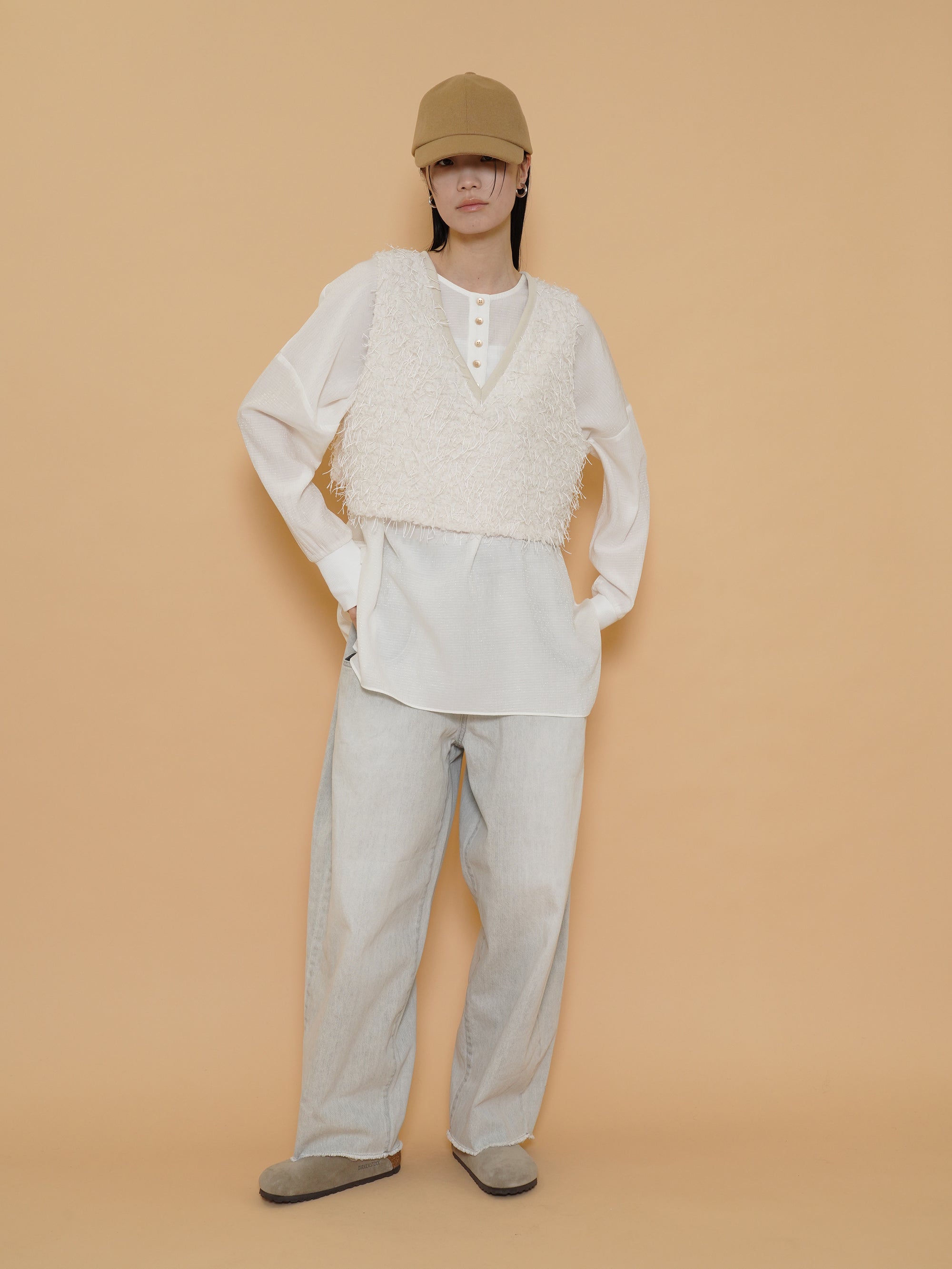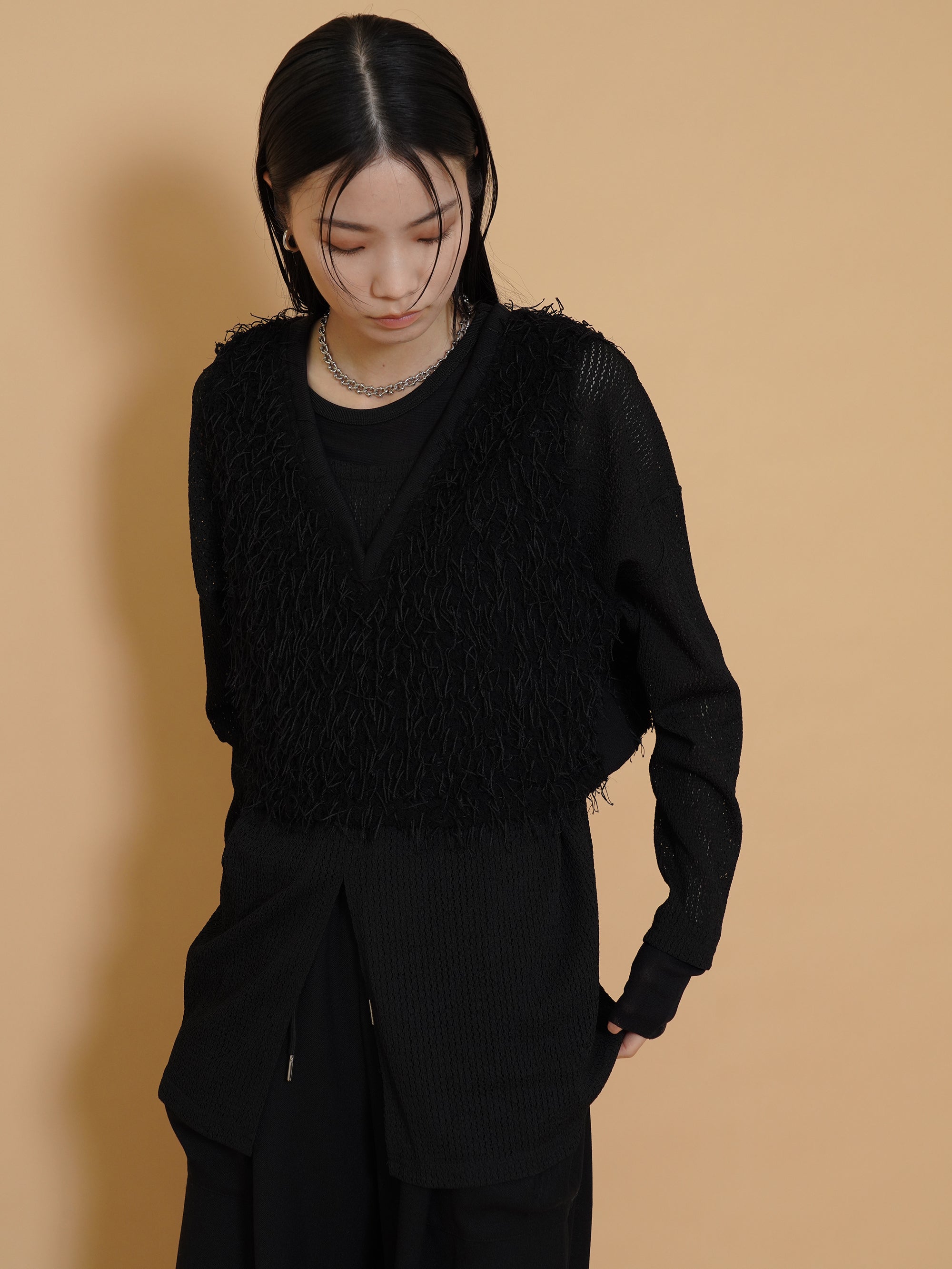 フリンジミックスのウォーム感のあるベストはプラス一枚で