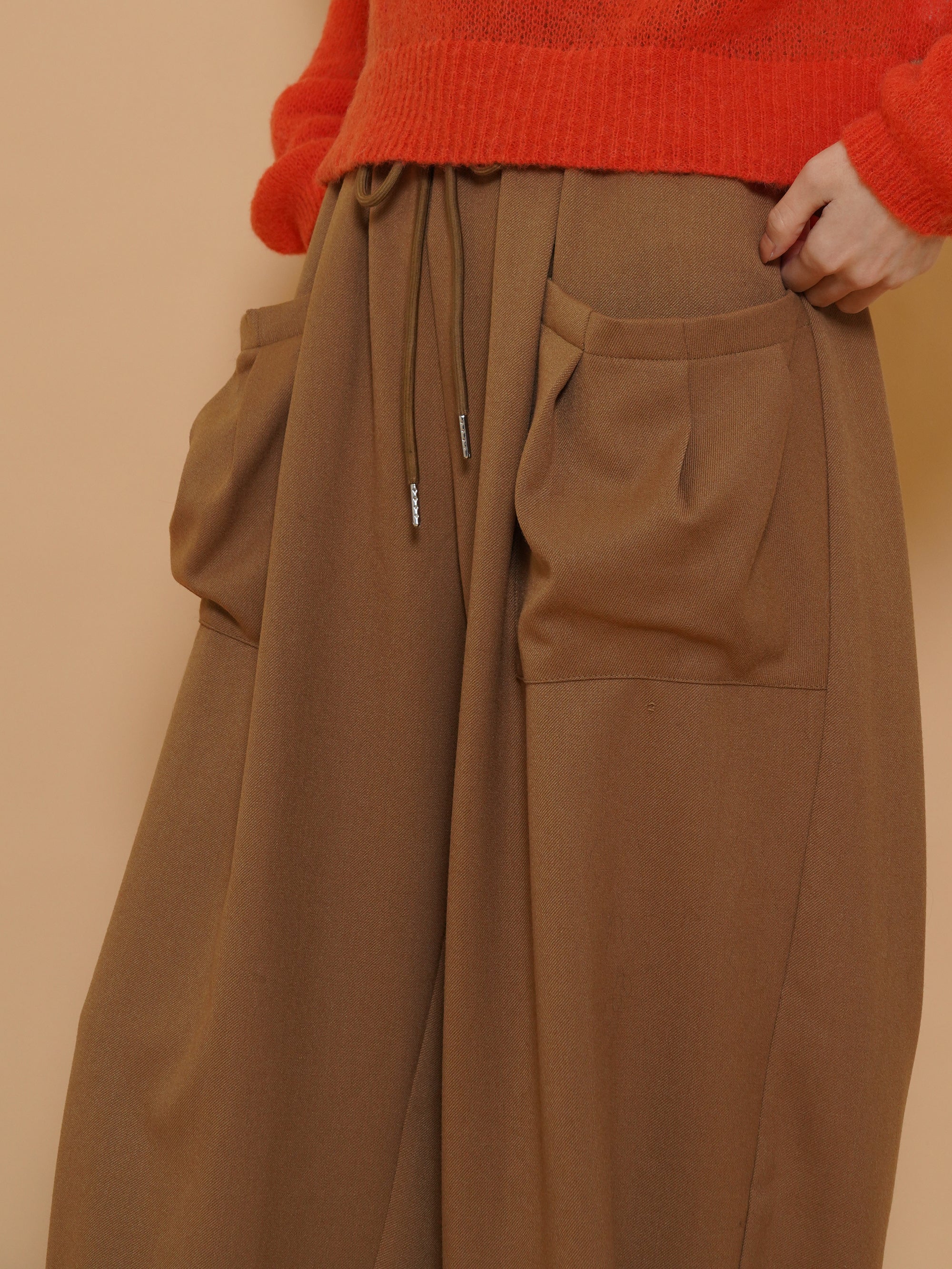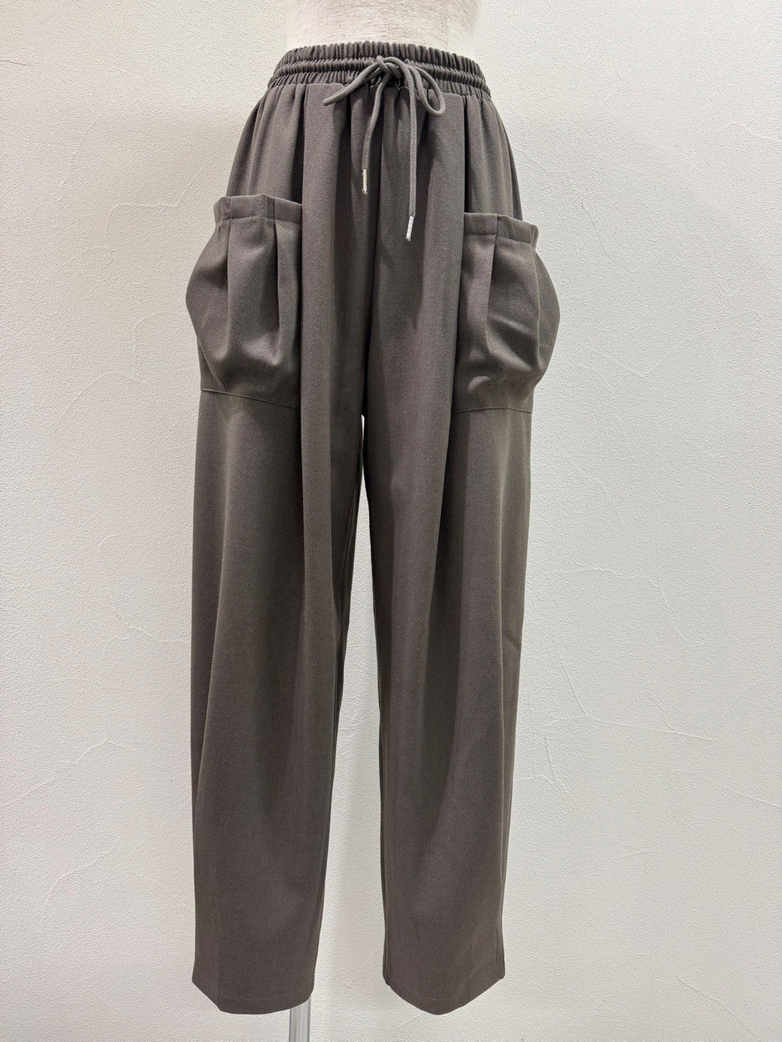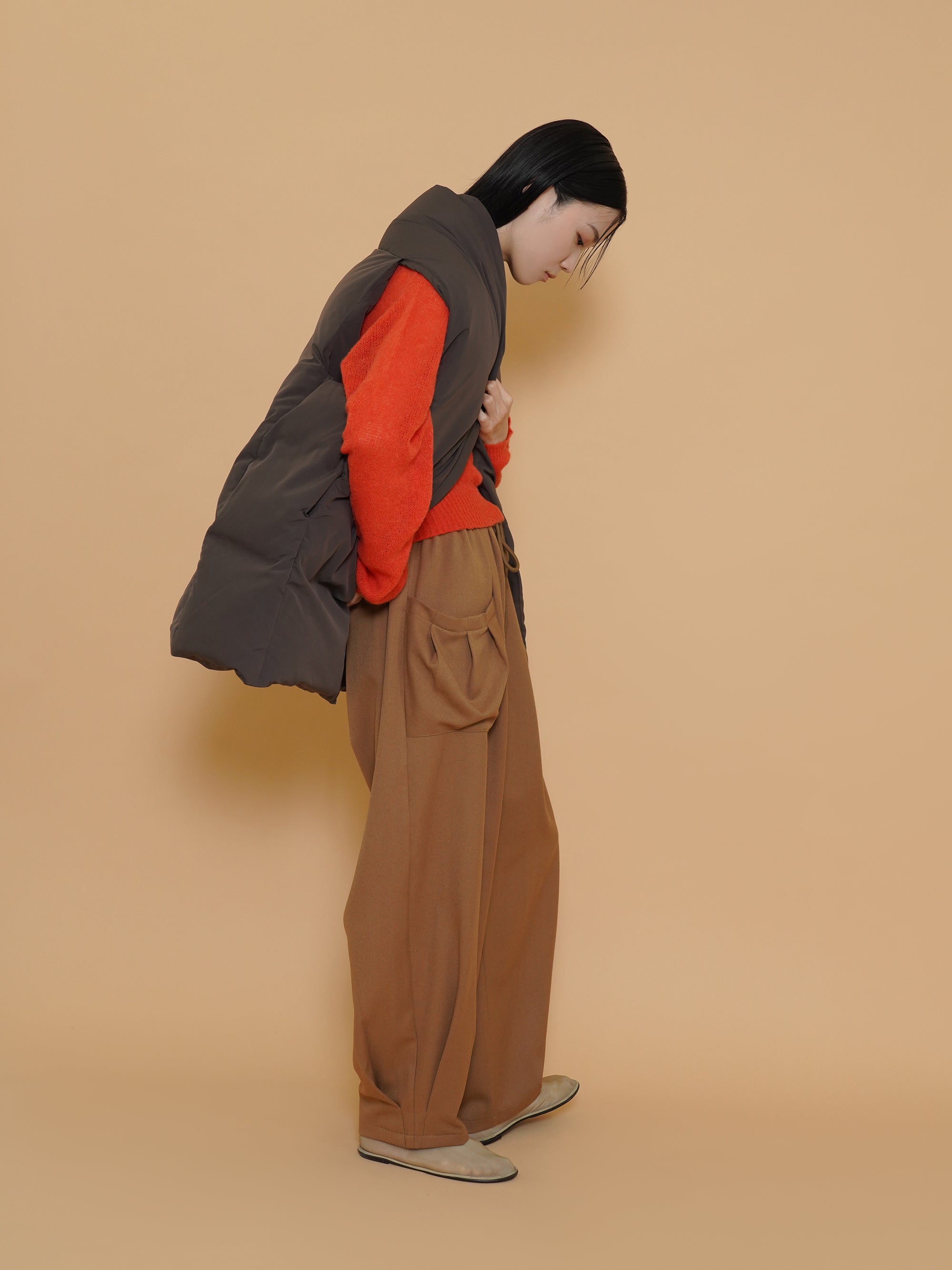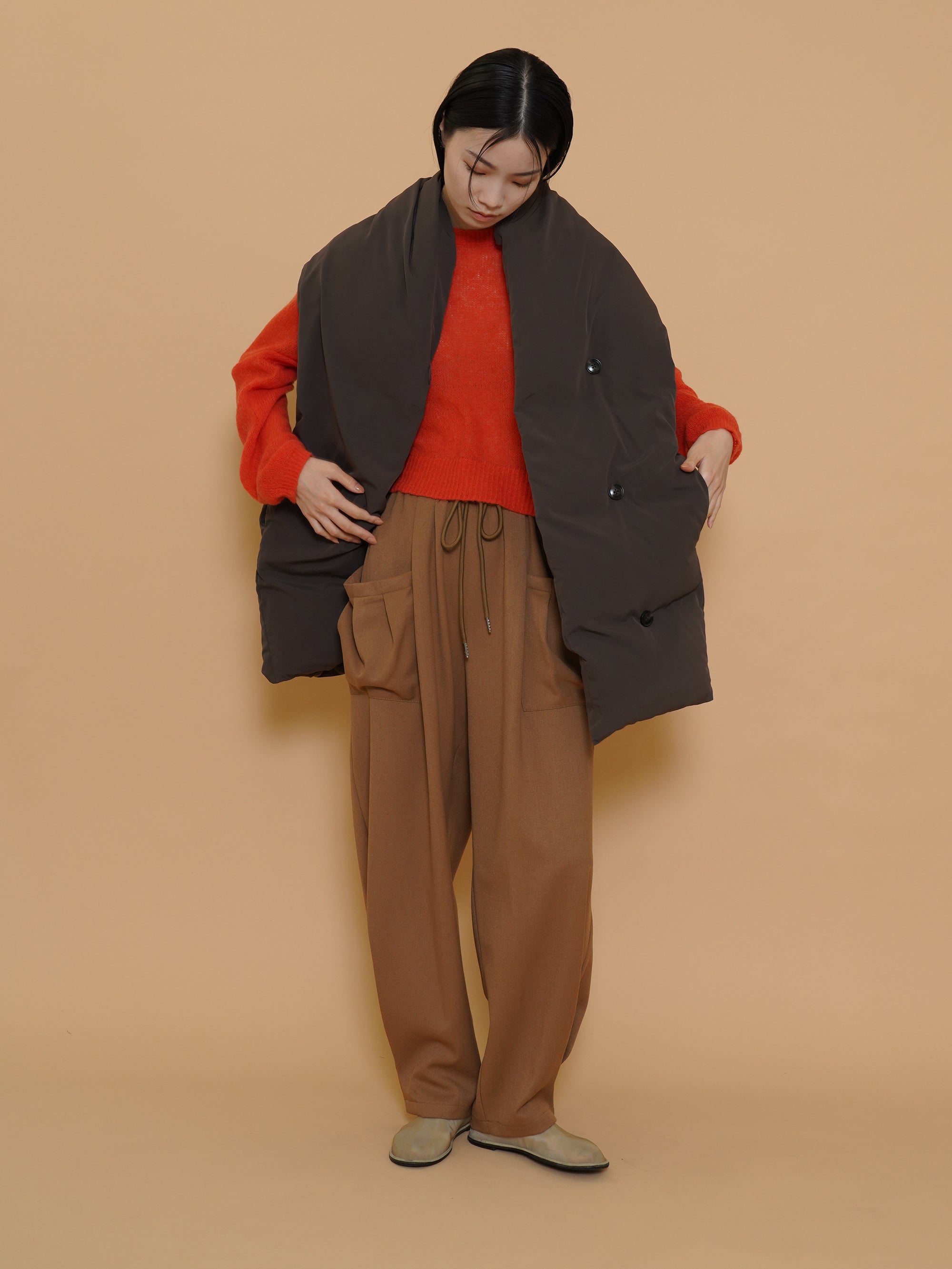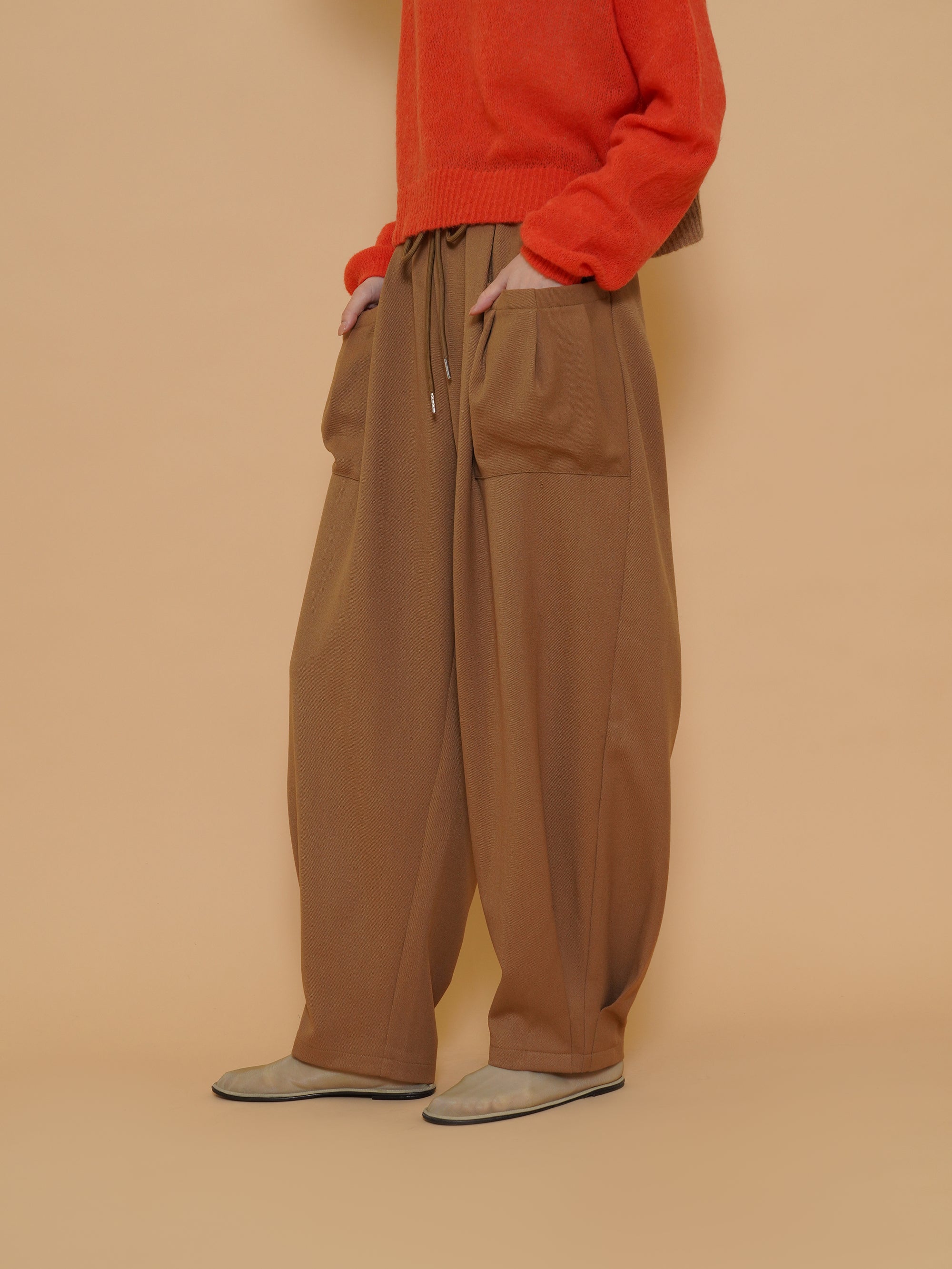 起毛感のある秋らしい素材のタックワイドパンツ