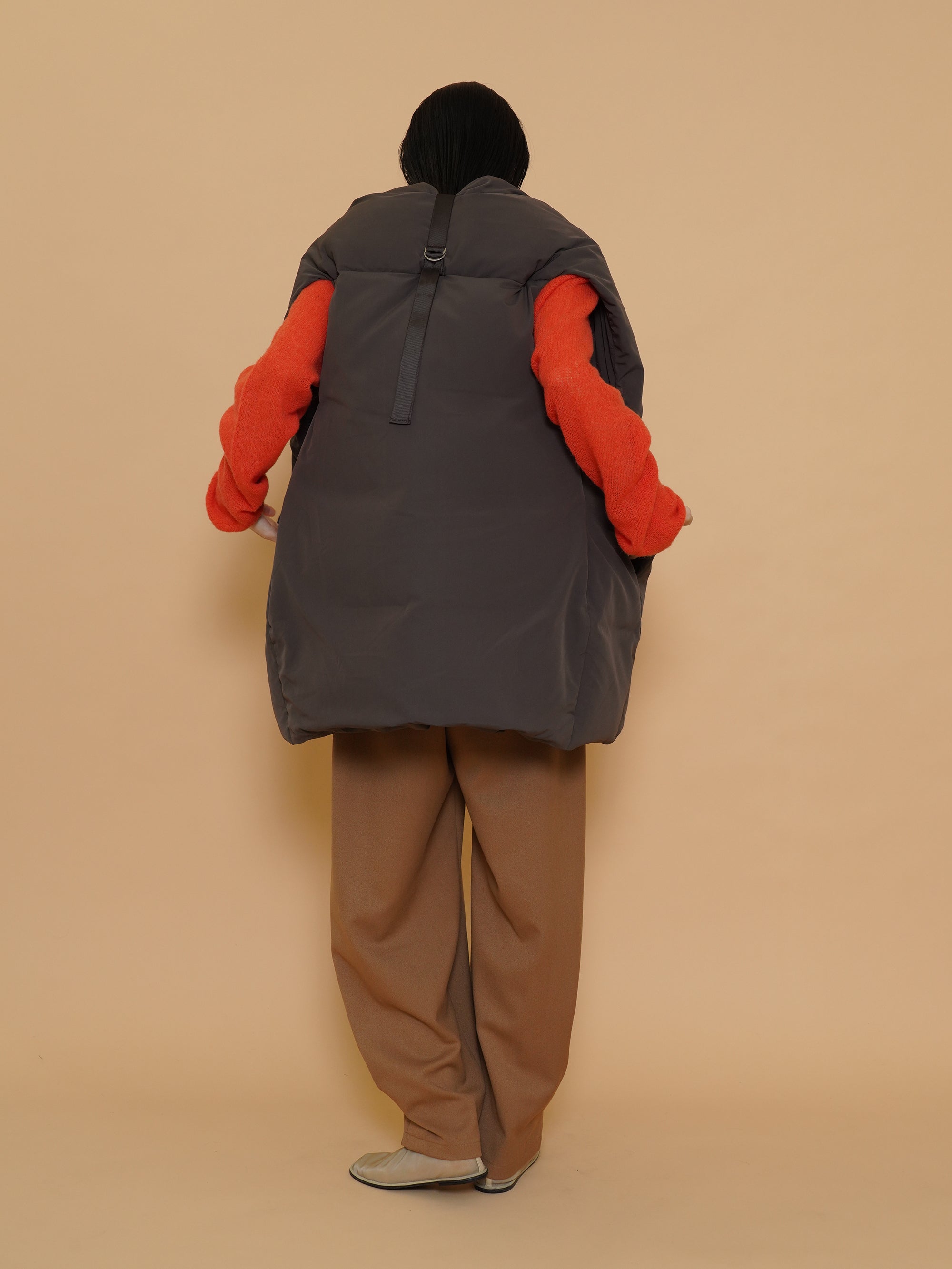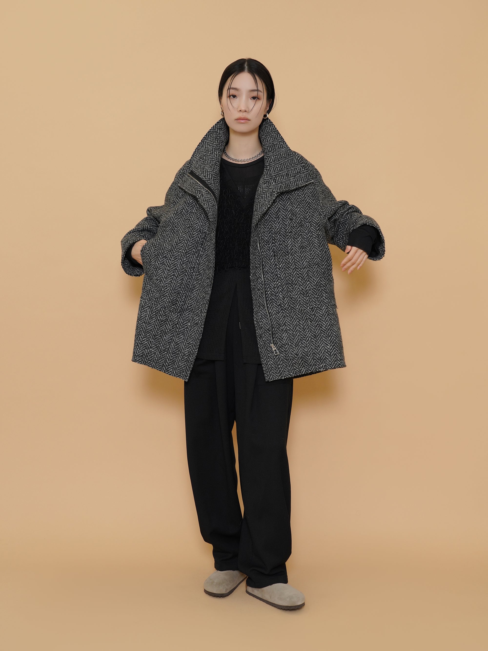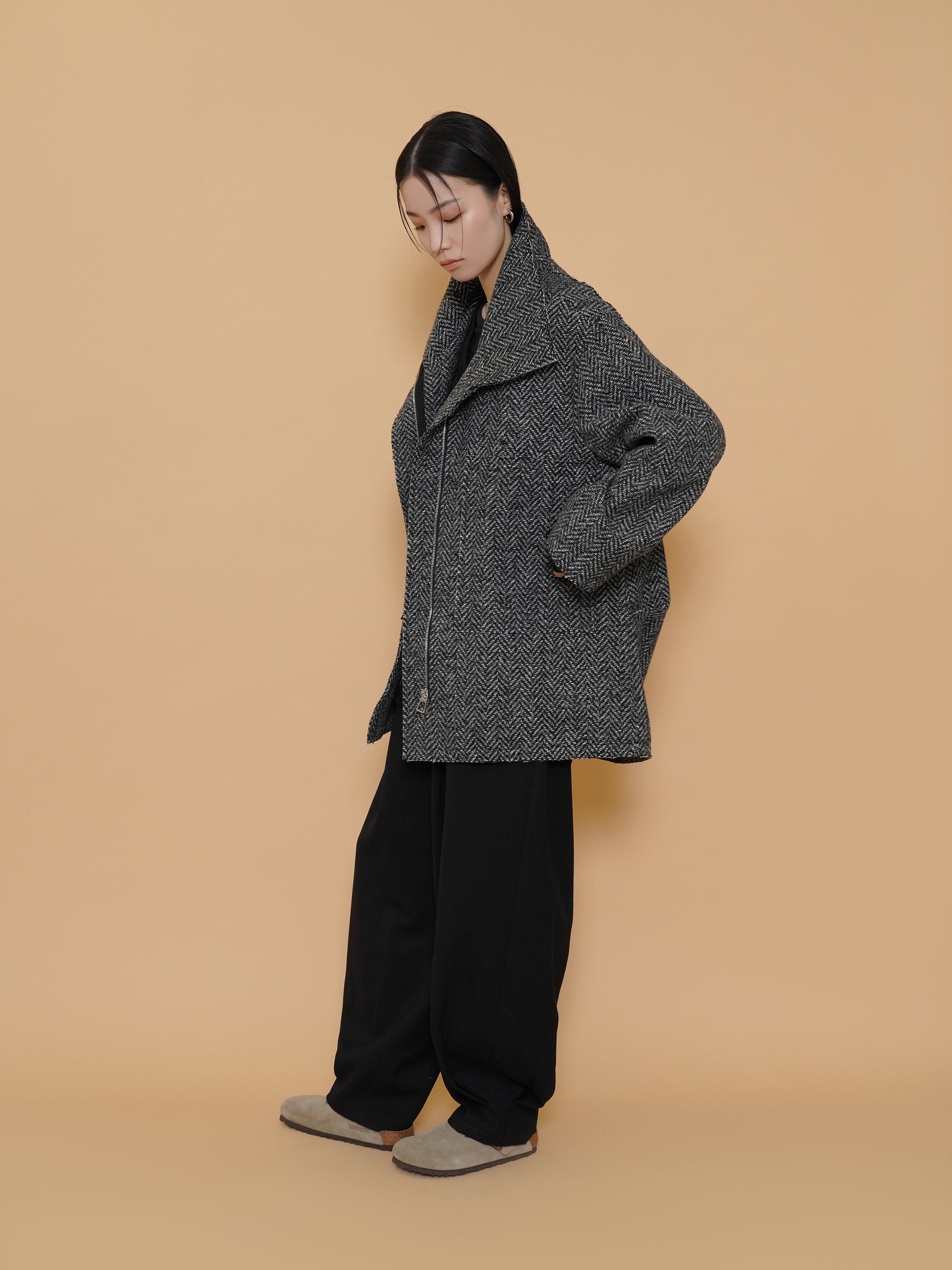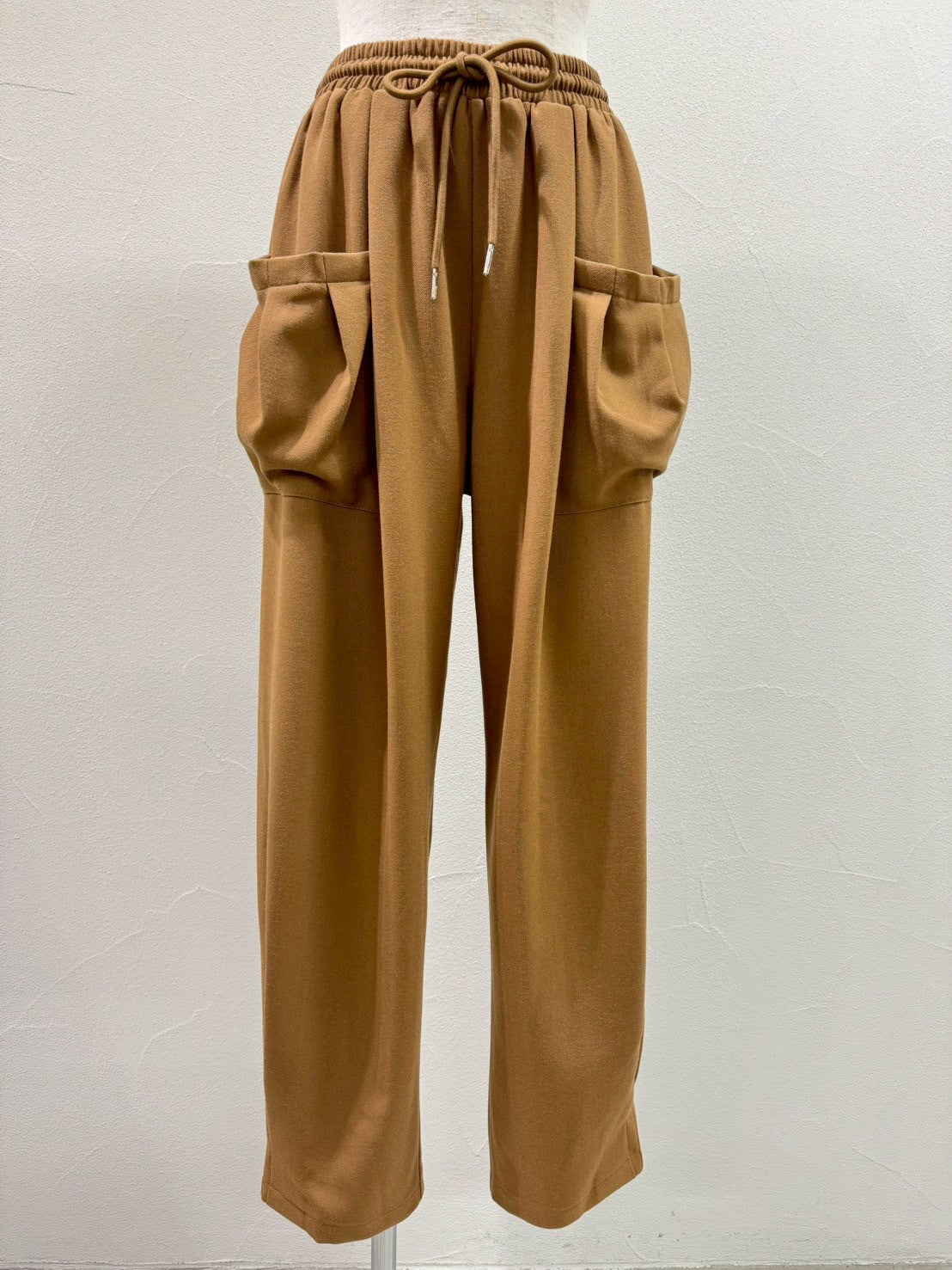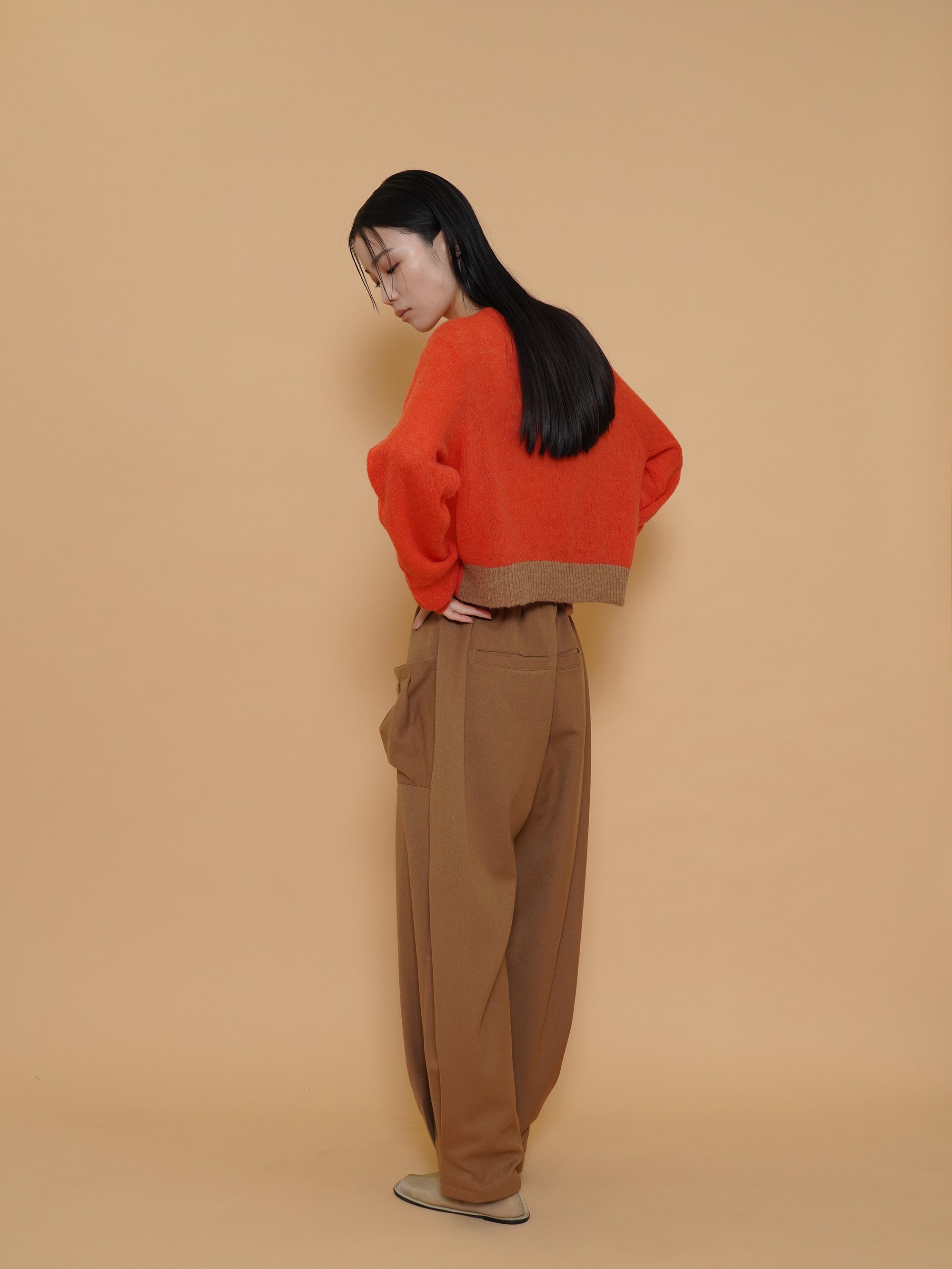 起毛感のある秋らしい素材のタックワイドパンツ