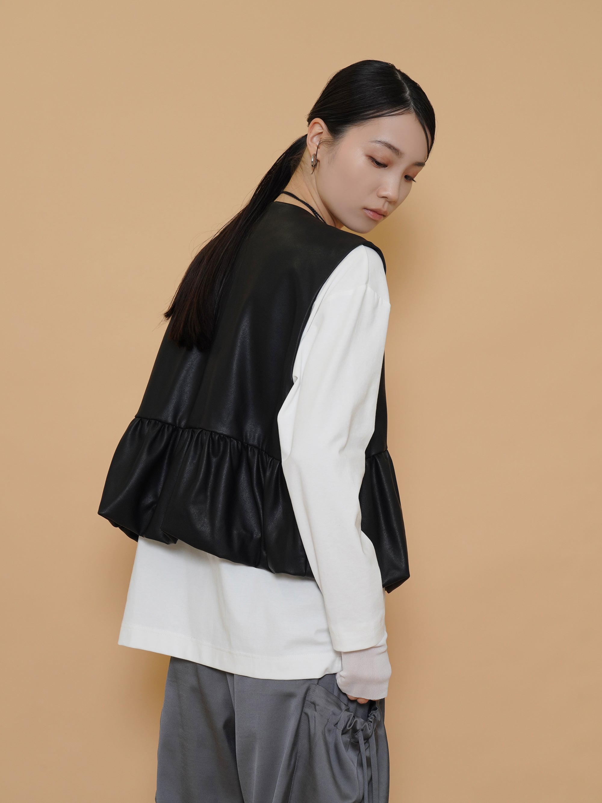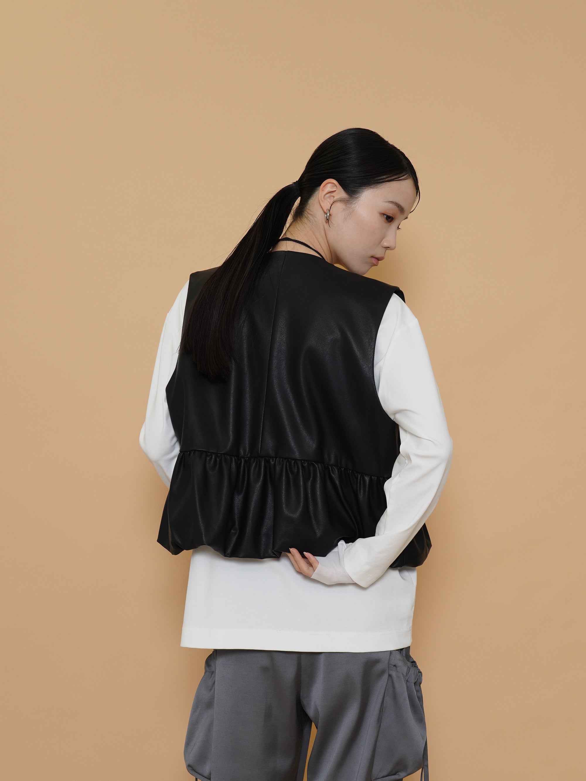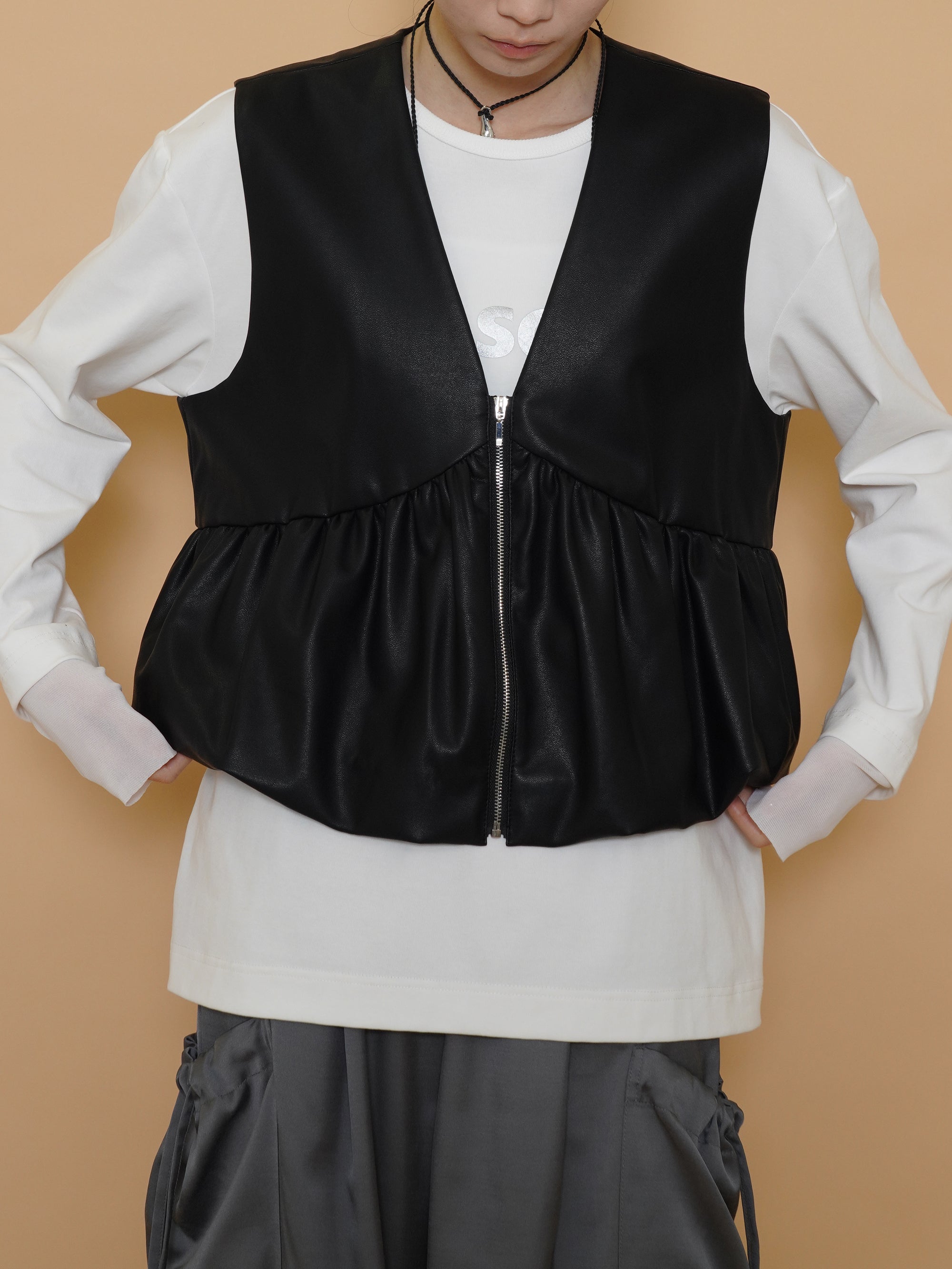vegan leather balloon gather vest