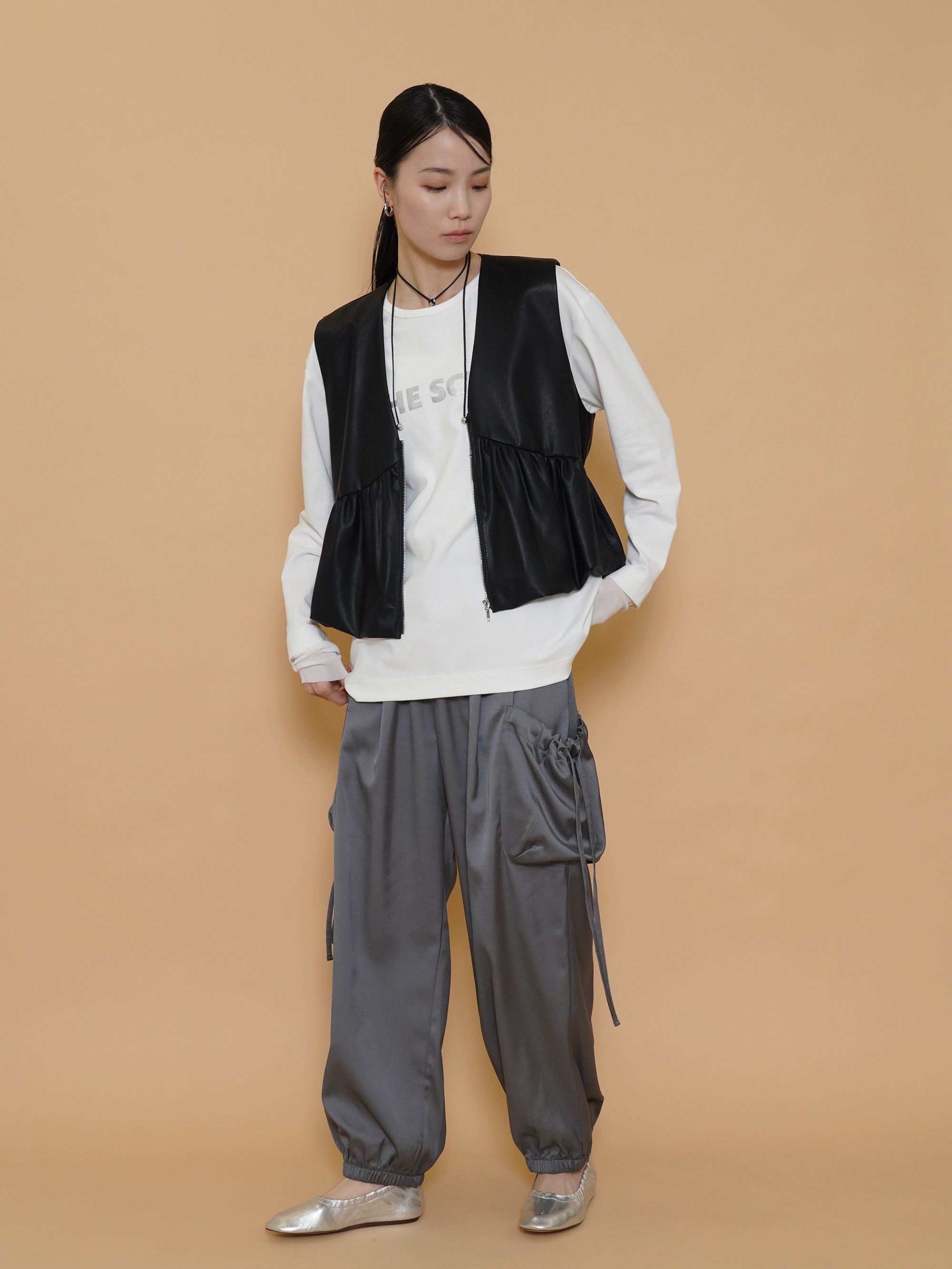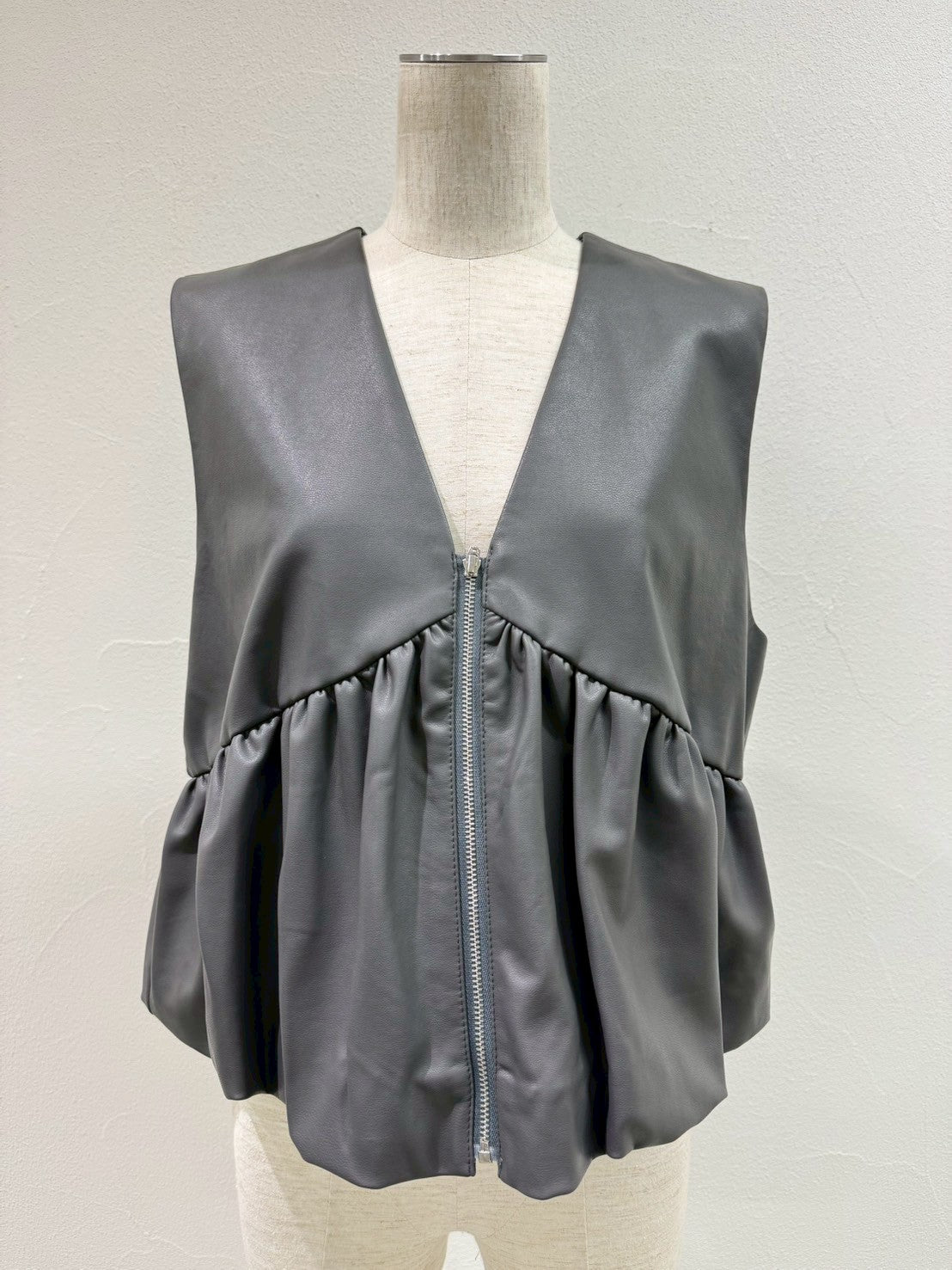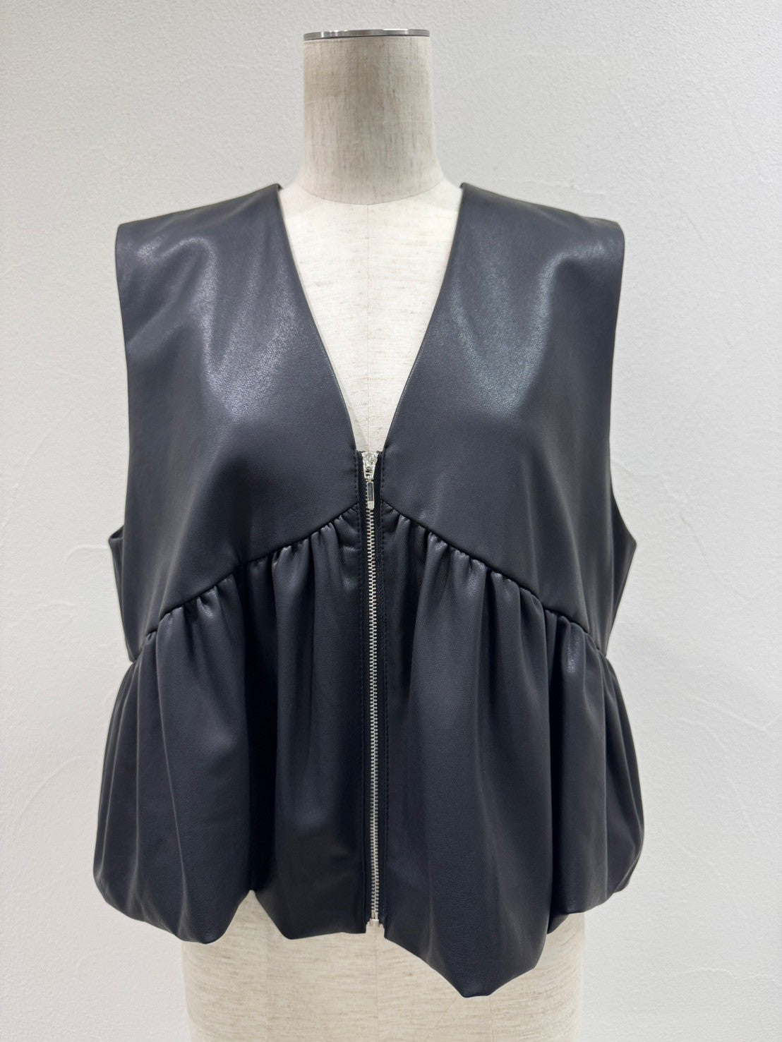 vegan leather balloon gather vest