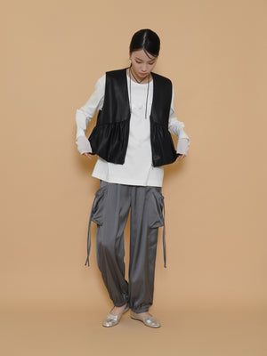 vegan leather balloon gather vest